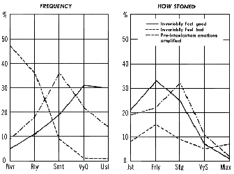 | Figure 16-1. QUALITY OF EMOTIONS WHEN INTOXICATED Note.For guide to interpreting the "How Stoned" graph, see note on Figure 6-1. |